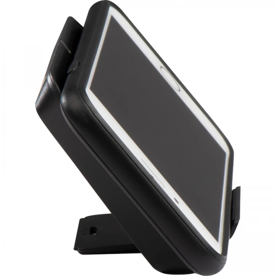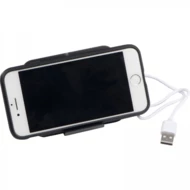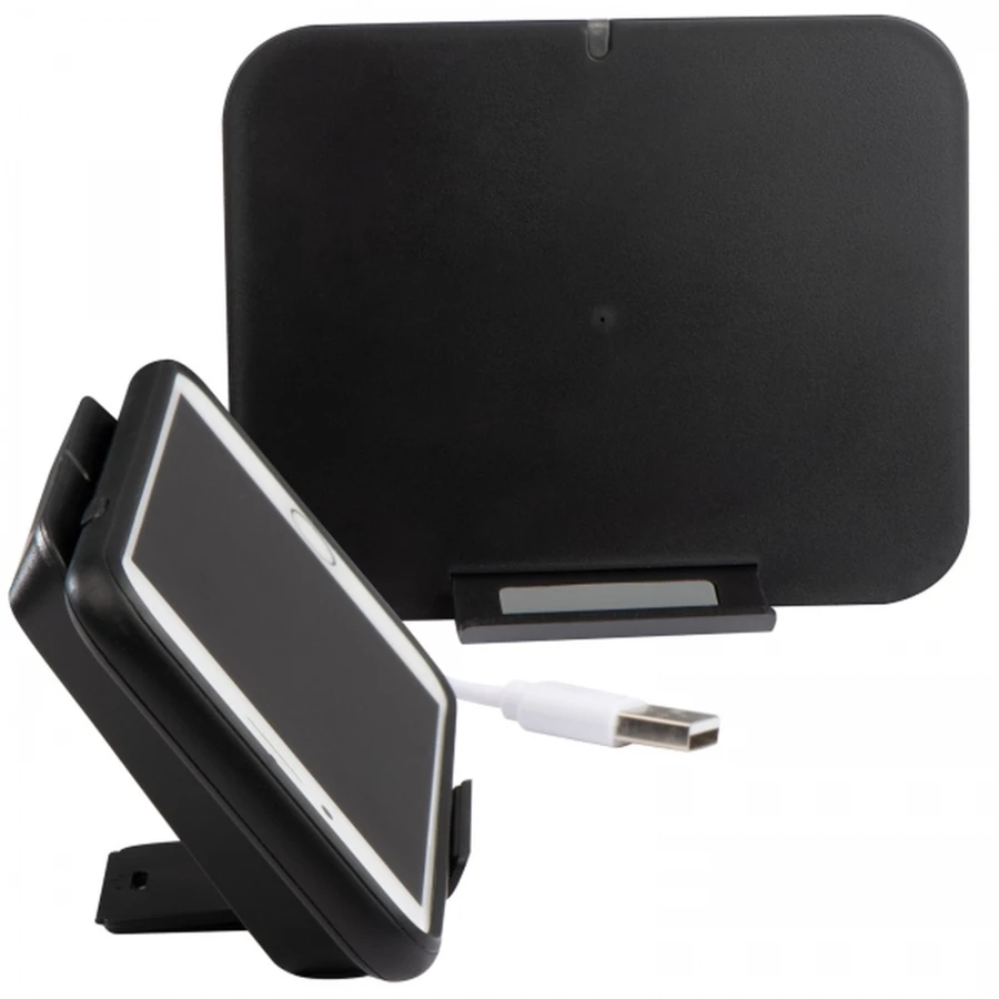 Plastic induction charger; charge your smartphone with cordless technology.The wireless charger also works as a stand for your smartphone. We will print your advertising on the front. Input: 5V/2A, output: 5V/1A.