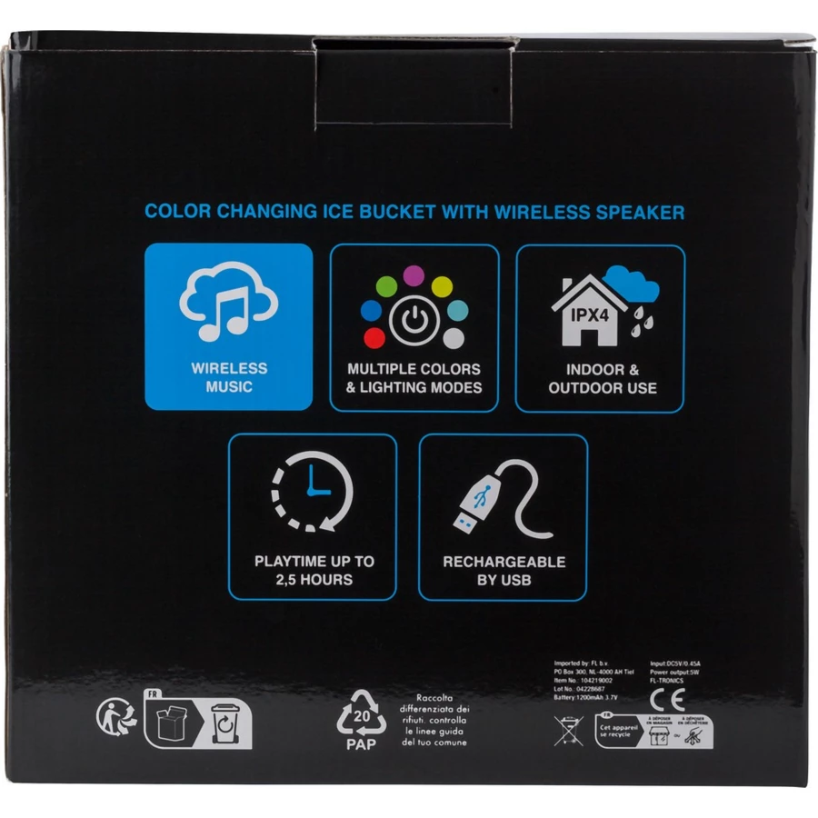 Wireless speaker with ice bucket function, color changing lights in the bottom, 1200 mAh battery