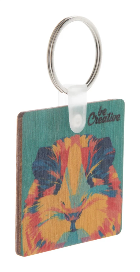 Square shaped, laminated birch wood keyring with full colour printing. Price includes UV LED printing on one side. MOQ: 200 pcs.
