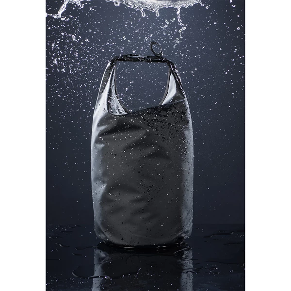 Wodoodporny worek o gumowanej powierzchni. Pojemność 10 litrów. Wyposażony w szczelne rolowane zamknięcie i odpinany pasek na ramię.
