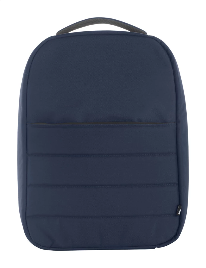 Fully padded RPET backpack with zipped compartments, padded laptop (15") and tablet (12") compartment, trolley strap, ergonomic back and shoulder straps. With hidden anti-theft pocket. 300D RPET polyester. With distinctive RPET label.