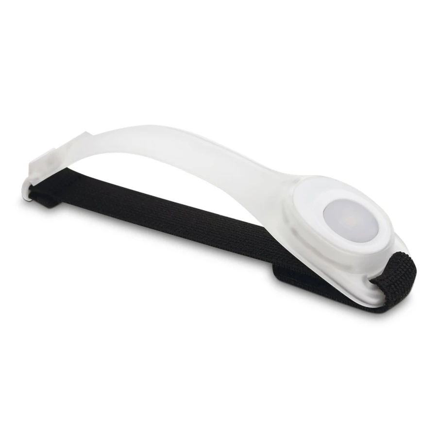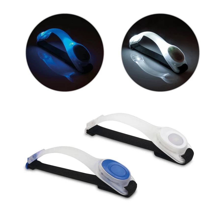 Silikonowy pasek z 2 LED z elastycznym paskiem. Baterie 2x są w opakowaniu. Pasek silikonowy 185 x 13 x 37 mm, pasek elastyczny 220 x 20 mm