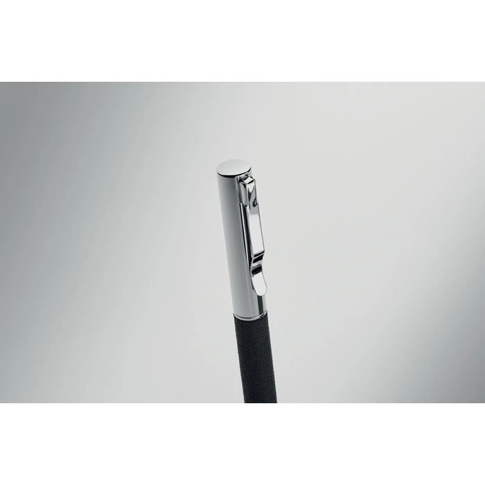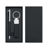 2-częściowy zestaw upominkowy w pudełku. Zawiera metalowy wykręcany długopis z detalami z poliestru RPET i brelok z poliestru RPET. Niebieski tusz.