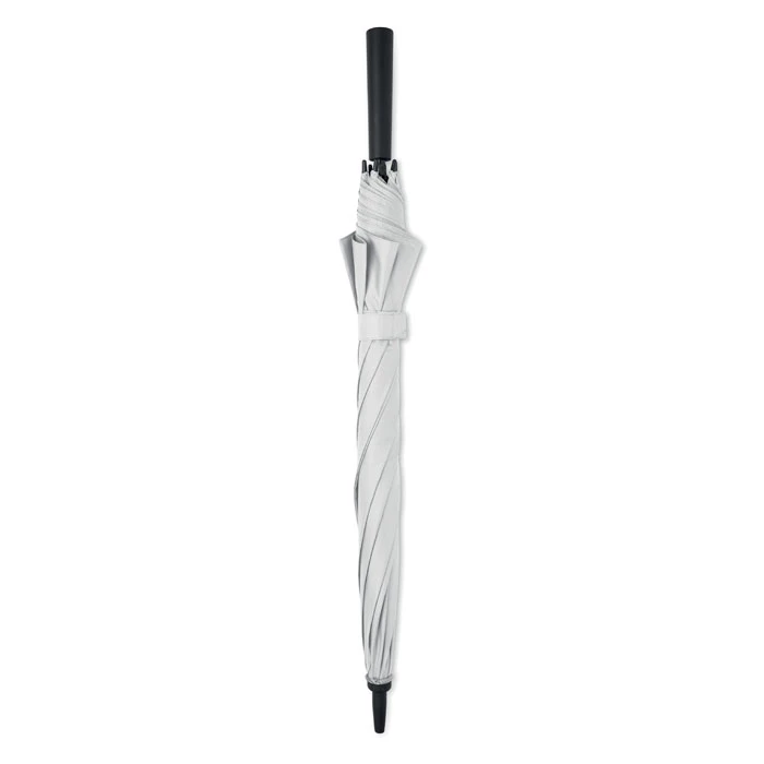 23-calowy, automatycznie otwierany, wiatroodporny parasol z poliestru 190T pongee ze stelażem z włókna szklanego, czarnym, chromowanym trzonem i plastikowymi końcówkami. Uchwyt ABS z gumowym wykończeniem. Ręczne zamknięcie.