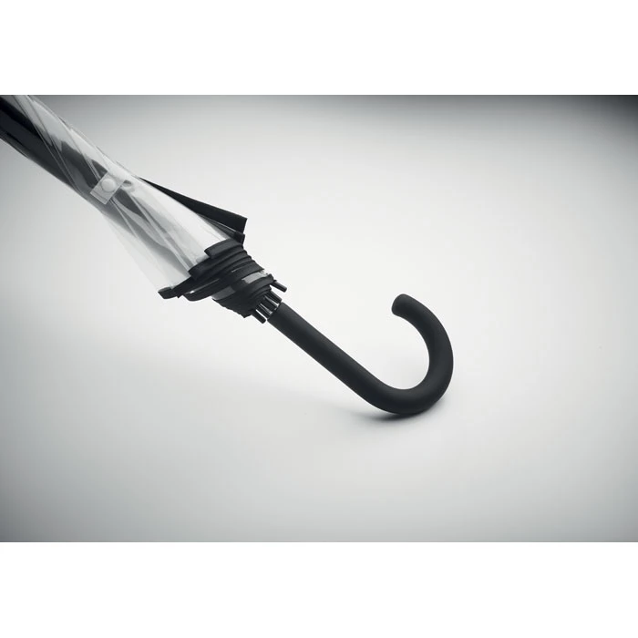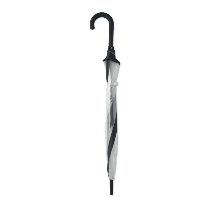 23-calowy prosty parasol z POE z 1 panelem z poliestru do nadruku. Otwierany ręcznie. Włókno szklane, żebra i rama. Chromowany trzon z plastikowymi końcówkami. Gumowany uchwyt.