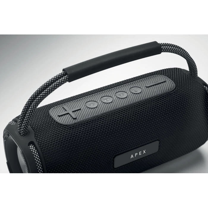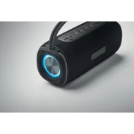 Bezprzewodowy przenośny głośnik 2x10 W z akumulatorem 2400 mAh. Zmieniające się kolory LED po obu stronach głośnika. Zawiera porty AUX, USB, TF. Czas odtwarzania ok. 5 godzin.
