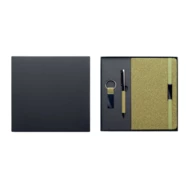 Zestaw składający się z notesu A5 w twardej okładce, 160 kartek w linie (80 kartek/70 g/m²), metalowego długopisu i breloka. Wykonany w 20% z fusów herbacianych, w 30% z korka i w 50% z tkaniny polycotton. Metalowy detal na elastycznym pasku. FSC®-certified | FSC MIX CREDIT, N7.1, FSC-C213206