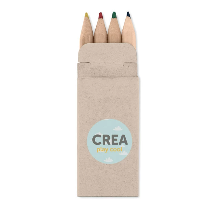 4 kolorowe mini ołówki w kartonowym pudełku z papieru z recyklingu.