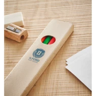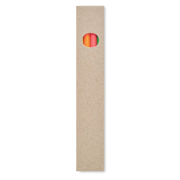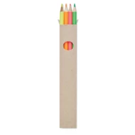 Zestaw 4 kolorowych ołówków z zakreślaczem w papierowym pudełku z recyklingu.