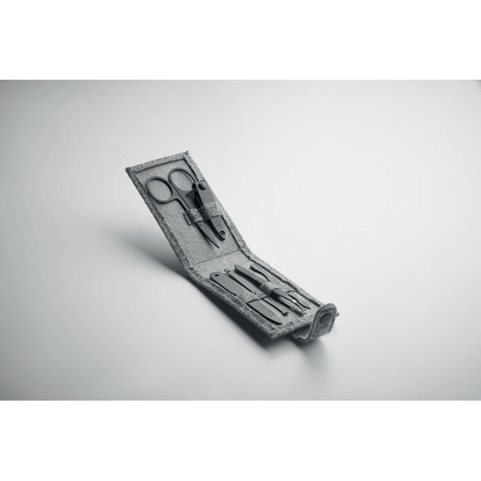 6-częściowy zestaw do manicure ze stali nierdzewnej w prostokątnym etui z filcu RPET.