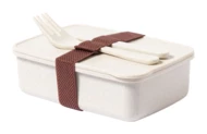 Pudełko śniadaniowe z tworzywa sztucznego PP z zestawem sztućców (nóż i widelec) oraz elastycznym paskiem. 700 ml.