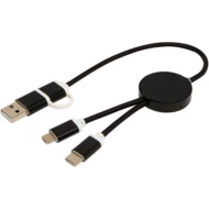 Kabel Alasia 5 w 1 do synchronizacji danych i szybkiego ładowania 27 W jest wykonany z eleganckiego i wytrzymałego aluminium pochodzącego z recyklingu oraz plastiku pochodzącego z recyklingu. Kabel jest wyposażony w złącze wejściowe USB-A i Type-C w połączeniu ze złączem wyjściowym Type-C oraz Lightning/Micro USB. Połączenie USB-A do USB-C zapewnia moc wyjściową maks. 27 W, a wszystkie inne opcje połączenia maks. 15 W. Akcesorium jest kompatybilne z CarPlay i Android Auto. Niezależnie od tego, czy jesteś w domu, w biurze czy w podróży, kabel Alasia zapewnia połączenie wydajności i stylu. Długość kabla: 30 cm.