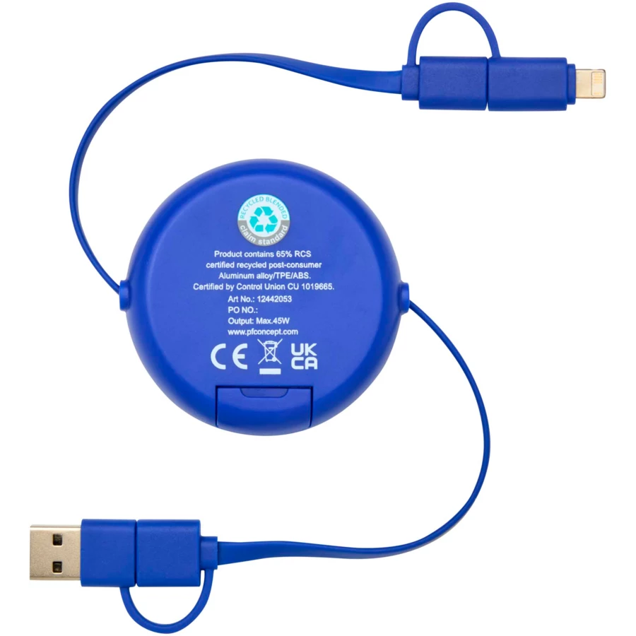 Alasia zwijany kabel do synchronizacji danych i szybkiego ładowania 5 w 1 45 W o długości 100 cm z tworzyw sztucznych i aluminium pochodzących z recyklingu (NPC-12442053)