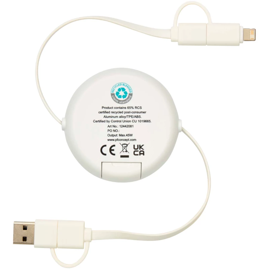Alasia zwijany kabel do synchronizacji danych i szybkiego ładowania 5 w 1 45 W o długości 100 cm z tworzyw sztucznych i aluminium pochodzących z recyklingu (NPC-12442081)
