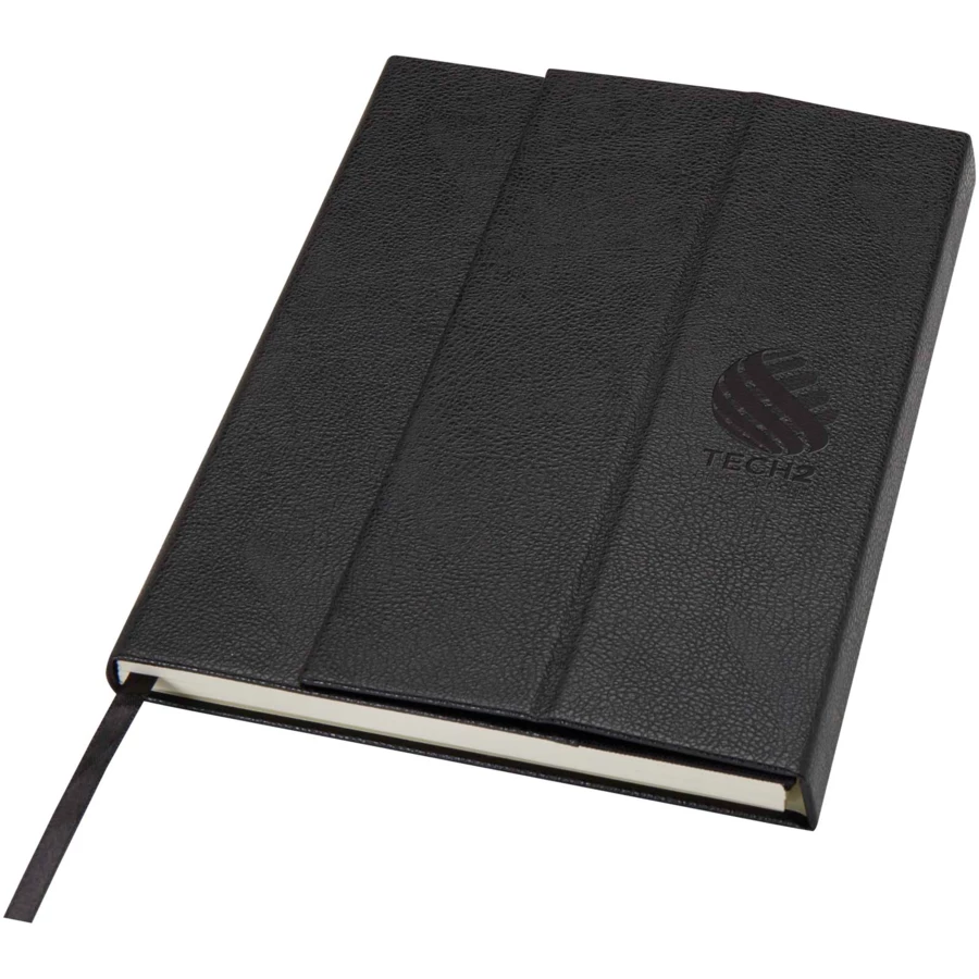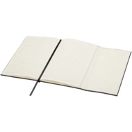 Notatnik w twardej oprawie Alejandra w formacie A5 jest z wykonany z przetworzonego poliuretanu i tworzywa RPET, zawiera 80 kartek w linie o gramaturze 70 g/m² w kolorze kremowym, wstążkową zakładkę i kieszeń w kształcie harmonijki.