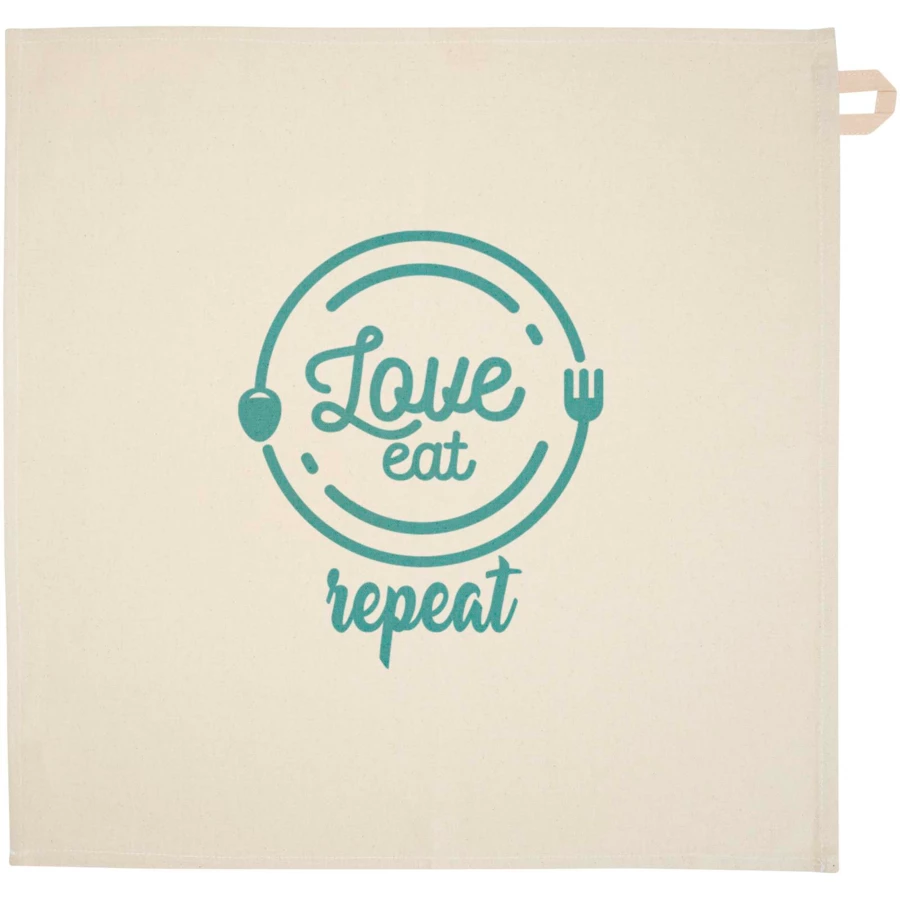 Ręcznik kuchenny wykonany w 100% z bawełny pochodzącej z recyklingu o gramaturze 200 g/m² z certyfikatem GRS, z charakterystyczną kontrastową pętelką. Wymiary ręcznika: 50 x 50 cm.