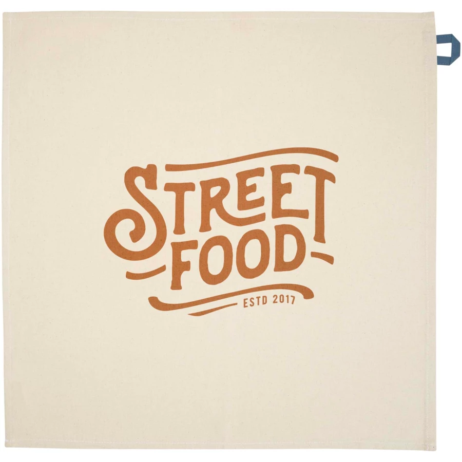 Ręcznik kuchenny wykonany w 100% z bawełny pochodzącej z recyklingu o gramaturze 200 g/m² z certyfikatem GRS, z charakterystyczną kontrastową pętelką. Wymiary ręcznika: 50 x 50 cm.