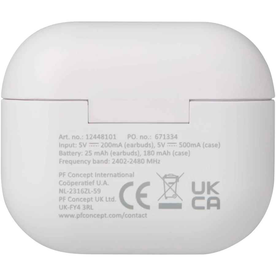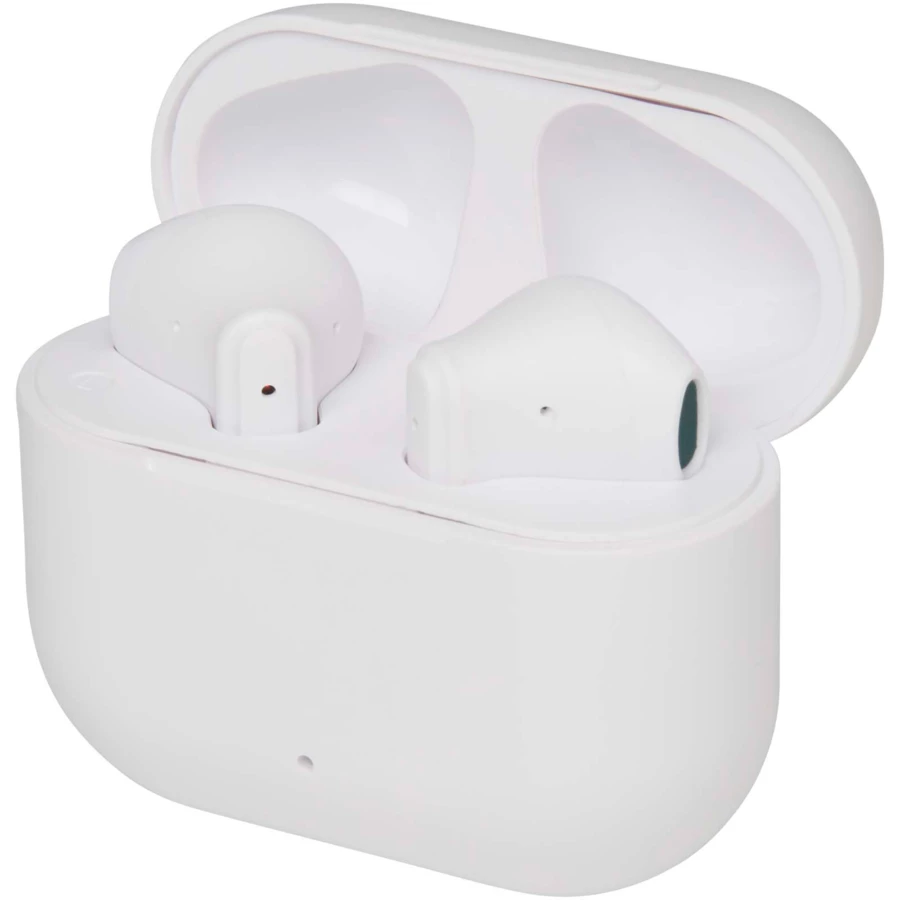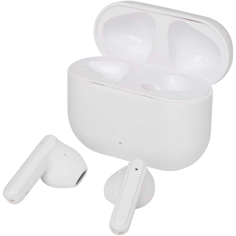 Altais zestaw słuchawkowy stereo TWS Bluetooth®, wykonany z tworzyw sztucznych pochodzących z recyklingu, łączy w sobie komfort i wygodę, a wszystko to w kompaktowym etui ładującym. Dzięki technologii Bluetooth® 6.0 zapewnia stabilną łączność, do 4 godzin rozmów lub odtwarzania muzyki oraz szybkie ładowanie w zaledwie 1–1,5 godziny. W zestawie znajduje się kabel ładujący USB-A do Type-C o długości 30 cm.