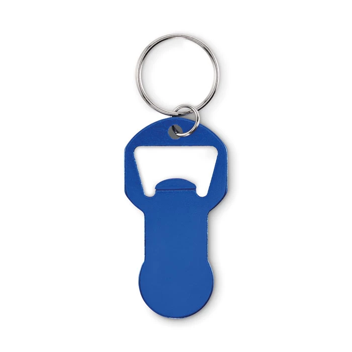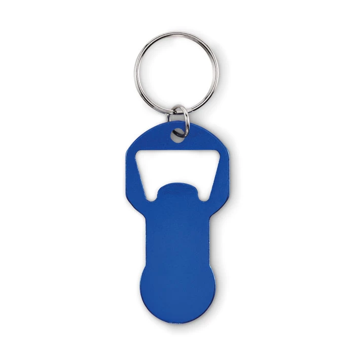 Brelok z otwieraczem do butelek wykonany z aluminium pochodzącego z recyklingu z żelaznym pierścieniem.