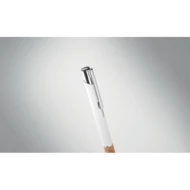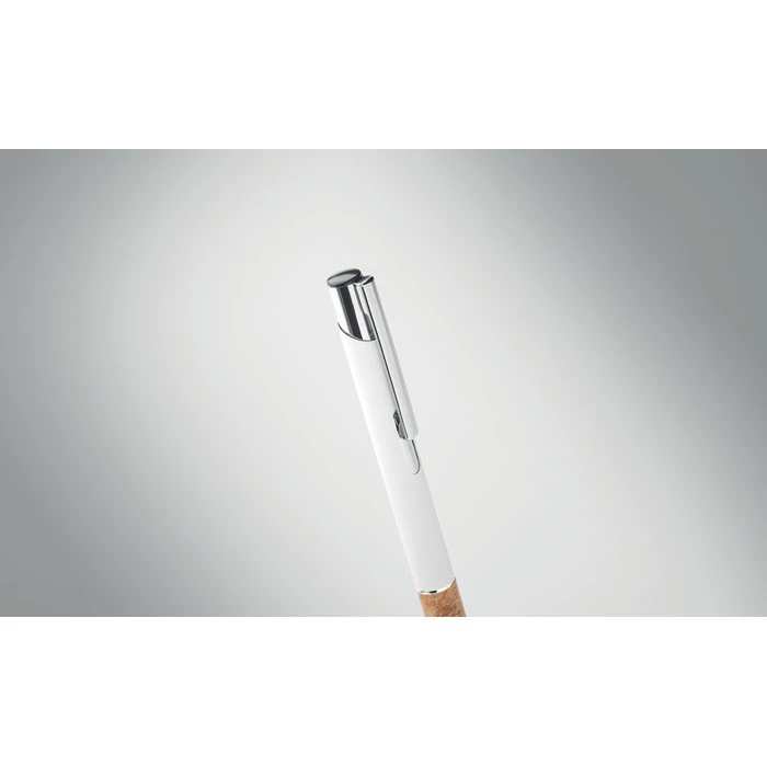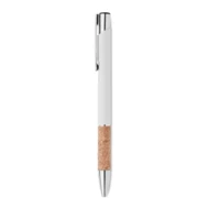 Przyciskany długopis z aluminium z korkowym uchwytem. Niebieski tusz.