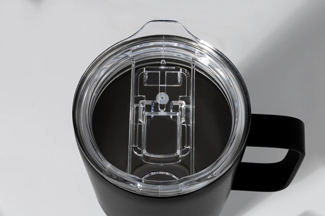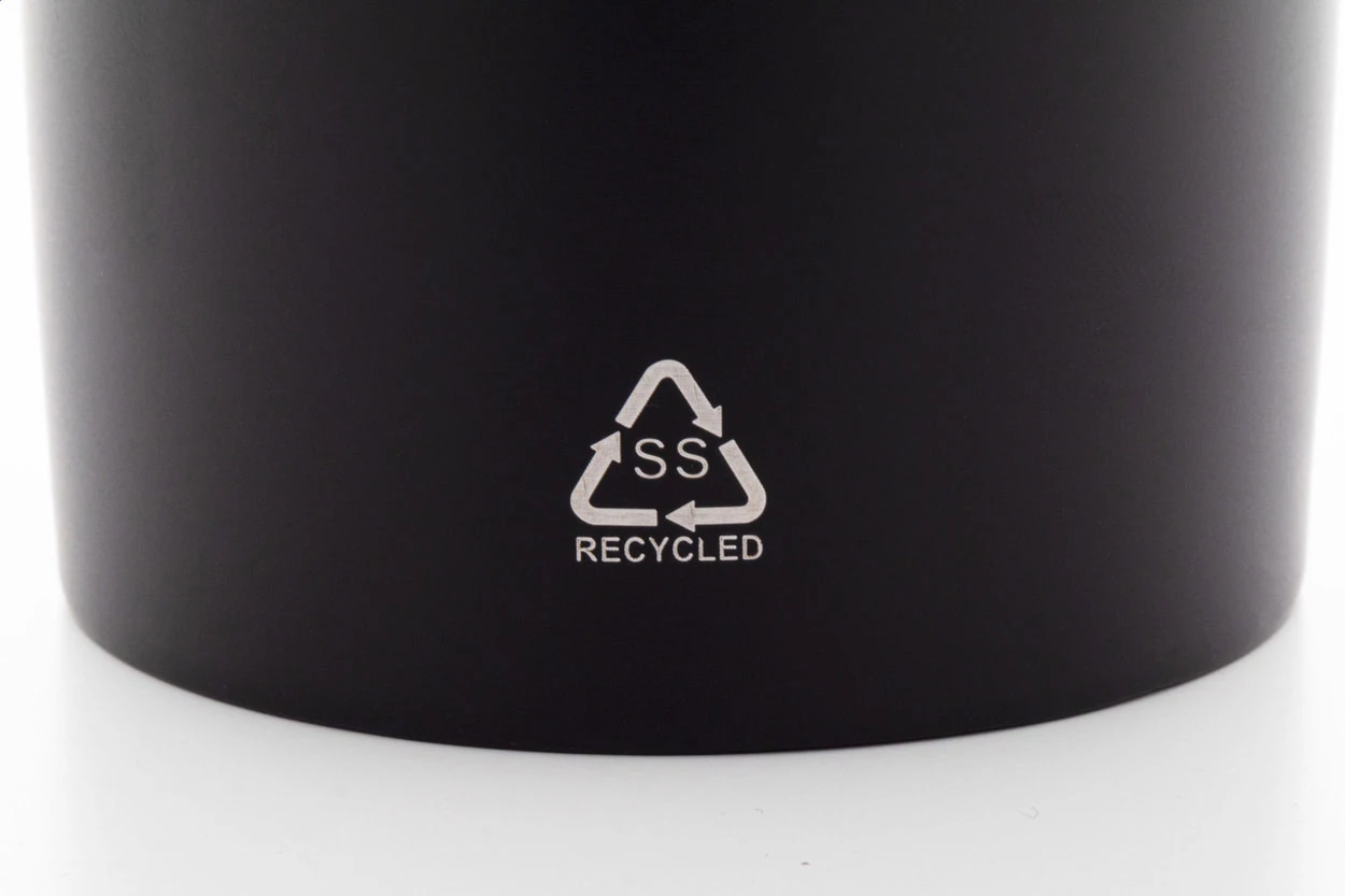 Kubek termiczny o podwójnych ściankach, izolowany próżniowo ze stali nierdzewnej pochodzącej z recyklingu, z pokrywką do picia z tworzywa sztucznego PS. 600ml.