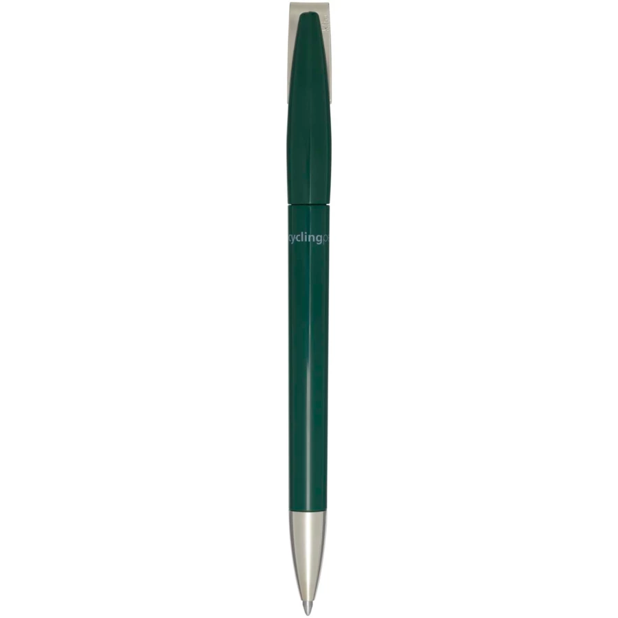 Długopis z korpusem i klipsem wykonanymi z tworzyw sztucznych pochodzących z recyklingu oraz końcówką ze stali nierdzewnej. Kolor tuszu: Niebieski. Żywotność: 3000 metrów. Rozmiar stalówki: 1,00 mm. Wyprodukowano w Niemczech.