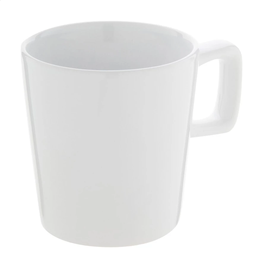 Wysokiej jakości kubek ceramiczny z prostokątnym uchem, pojemność 280 ml. W pudełku z papieru kraft.