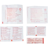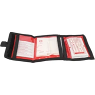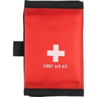 Apteczka, zapięcie na rzep, pasek ułatwiający noszenie, kieszenie wewnętrzne, ikona RPET na metce, plastry (5 szt.), jałowy opatrunek, gąbka, gaziki nasączone alkoholem (8 szt.), wilgotne chusteczki (2 szt.), produkt wykonany z PE, PVC, PU i RPET 600D