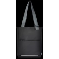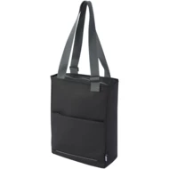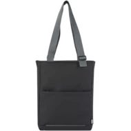 Wodoodporna torba na zakupy na laptopa wykonana z materiałów pochodzących z recyklingu z certyfikatem GRS, w tym zamków błyskawicznych. Posiada dedykowany pokrowiec na tablet, przegrodę na 14-calowego laptopa, wiele kieszeni do organizacji, przednią kieszeń z panelem organizacyjnym, regulowane uchwyty o długości 35 cm i pasek do spinania. Materiały z recyklingu GRS obejmują główny materiał, podszewkę, taśmy i zamki błyskawiczne. Pojemność: 14 litrów. Wolne od PVC.