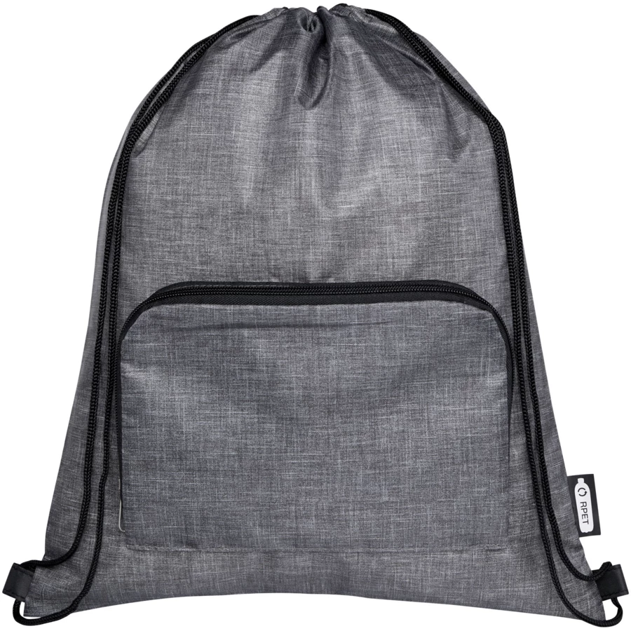 Składana, ściągana sznurkiem torba Ash z materiału z recyklingu z certyfikatem GRS ma główną przegrodę z zapięciem na sznurek i przednią kieszeń zapinaną na zamek błyskawiczny, dzięki czemu torbę tę można łatwo złożyć, aby ułatwić transport i przechowywanie.