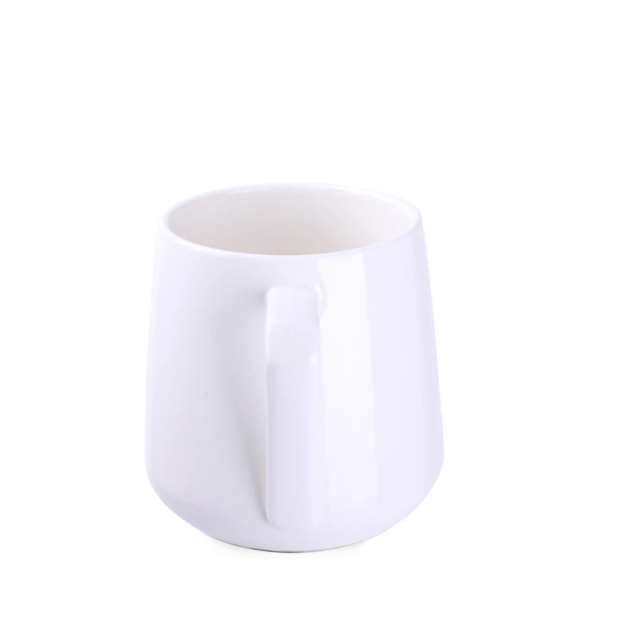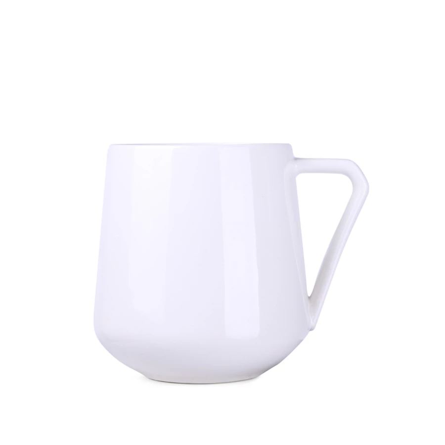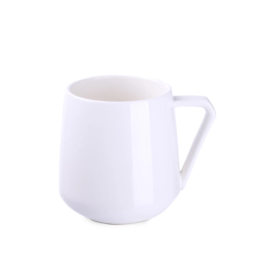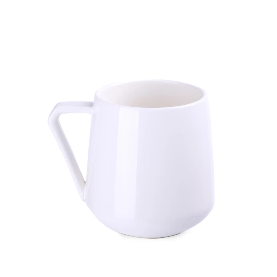 Porcelanowy kubek o ciekawym kształcie i awangardowym uchwycie. W oryginalny sposób podkreśli wyjątkowość promowanej marki.