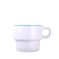 Ciekawy kubek sztaplowany w skandynawskim stylu. Występuje w kilku modnych wariantach kolorystycznych. Wyróżnia się charakterystycznym kształtem ucha.