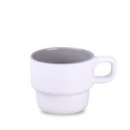 Ciekawy kubek sztaplowany w skandynawskim stylu. Występuje w kilku modnych wariantach kolorystycznych. Wyróżnia się charakterystycznym kształtem ucha.