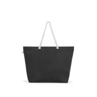 Torba plażowa z bawełny pochodzącej z recyklingu (70%) i poliestru pochodzącego z recyklingu (30%) (220 g/m²). Uchwyty o długości 65 cm są wykonane ze skręconej bawełnianej liny, co zapewnia wygodę i nawiązuje do morskiego stylu. Bawełna z recyklingu jest jednobarwna i niebarwiona. Surowiec jest używany w swojej oryginalnej formie i kolorze, bez użycia barwiących lub wybielających chemikaliów, co przyczynia się do zmniejszenia wpływu na środowisko. Jednolity kolor uzyskuje się poprzez wybór przędzy z recyklingu o tym samym odcieniu, mogą pojawić się z tego powodu pewne różnice kolorystyczne. 550 x 390 x 150 mm