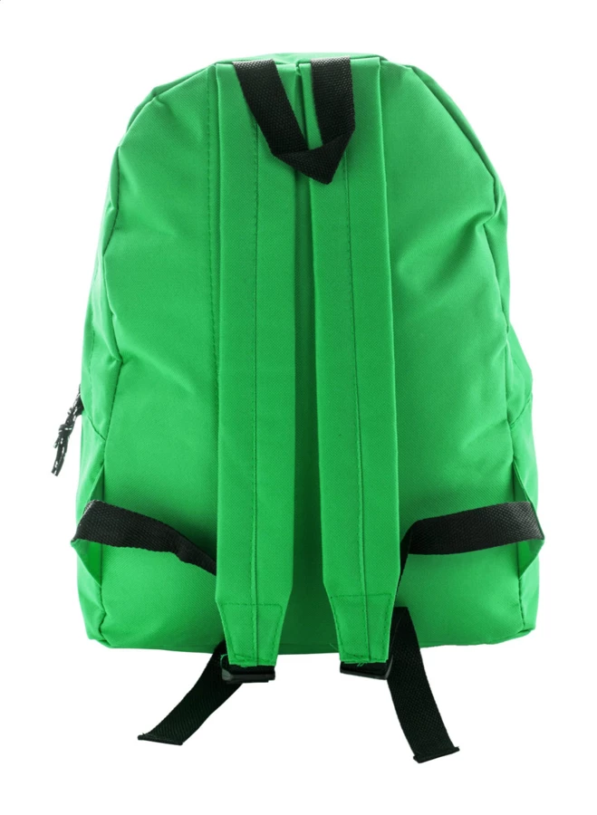 Plecak z zamykaną z przodu kieszenią na zamek, z miękkim tyłem oraz rączką. Materiał: poliester 600D.