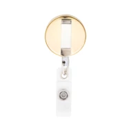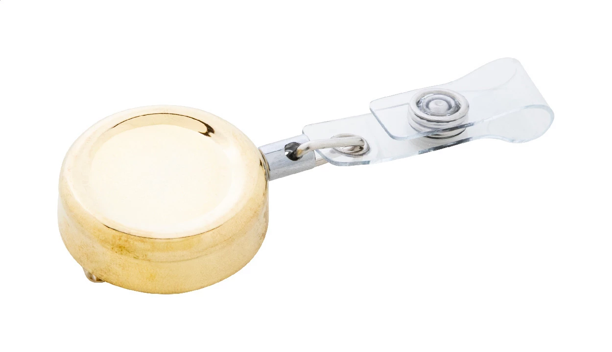 Ekskluzywny metalowy uchwyt na identyfikator z połyskującym metalicznym wykończeniem. Zapinany na zatrzask, z teleskopową linką i metalowym klipsem.