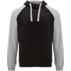 Dwukolorowa bluza z kapturem unisex. Kaptur ze skrzyżowanym dekoltem i metalowymi oczkami. Kontrastowy kaptur wewnętrzny, ściągacz i raglanowe rękawy. Kieszeń kangurka. Mankiety i dół wykonane z elastanowej dzianiny ściągaczowej 1x1. Usuwalna etykieta.