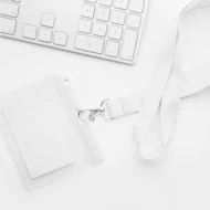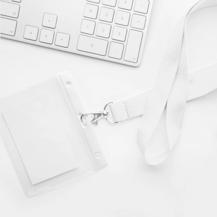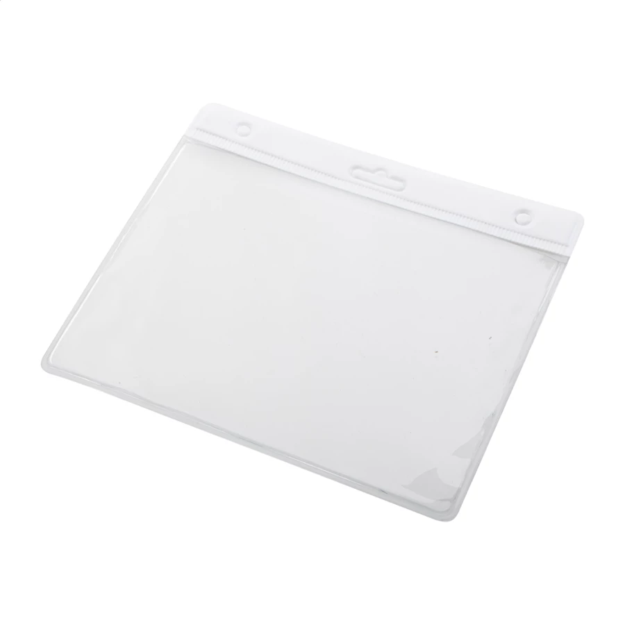 Transparentne etui na przepustki z PVC z kolorowym nagłówkiem.