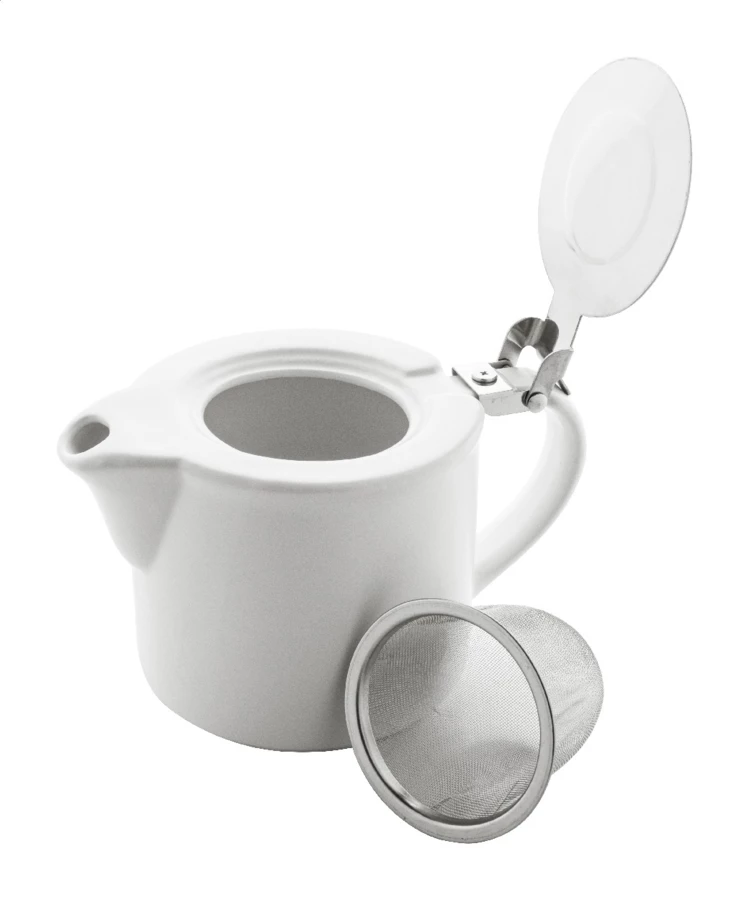 Wysokiej jakości ceramiczny zestaw do herbaty z matowym wykończeniem i bambusową tacą. W zestawie czajniczek (500 ml) z pokrywką ze stali nierdzewnej i sitkiem do herbaty oraz dwie filiżanki (150 ml). W pudełku z papieru kraft.