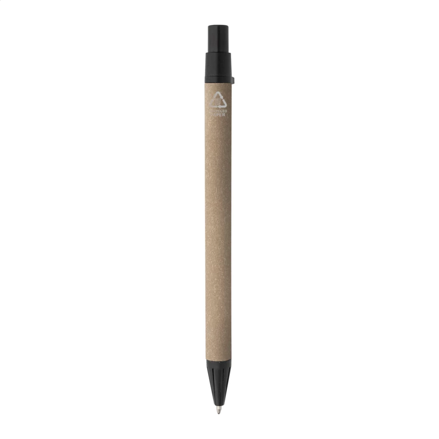 Notes spiralny z papieru z recyklingu, 80 kartek w linie. Format A6. W zestawie papier z recyklingu i długopis z polipropylenu z recyklingu z niebieskim wkładem.