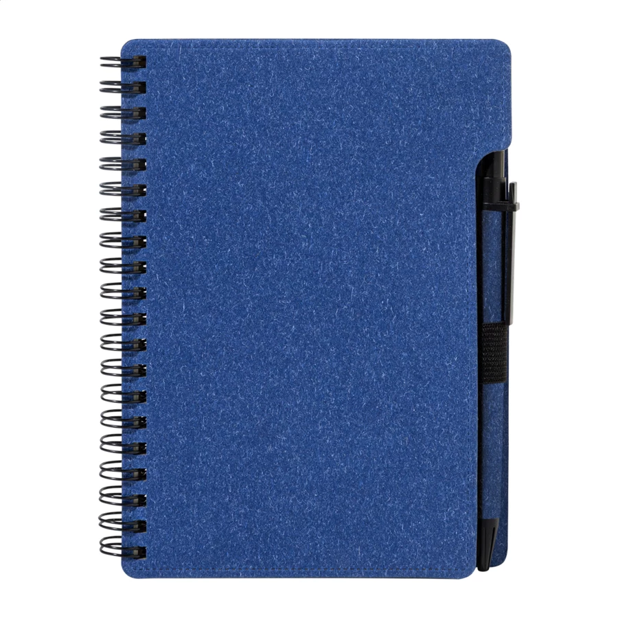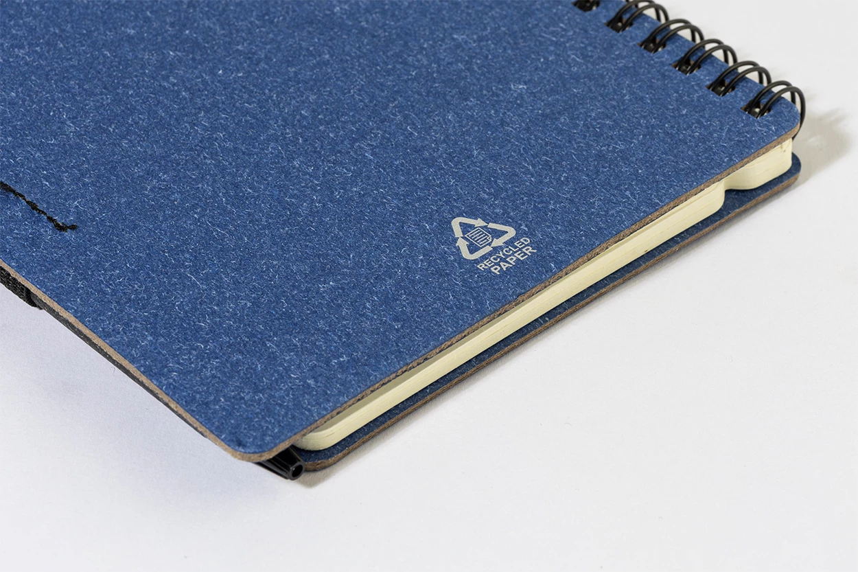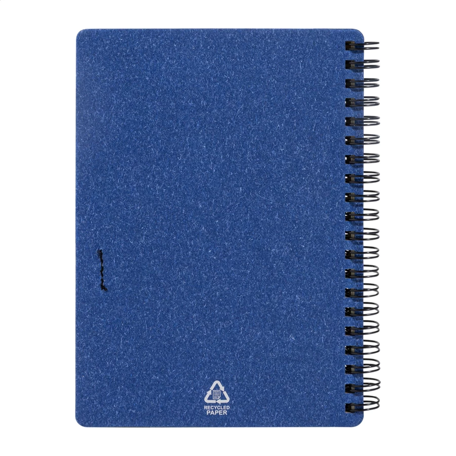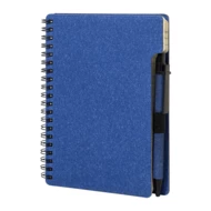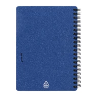 Notes spiralny z papieru z recyklingu, 80 kartek w linie. Format A6. W zestawie papier z recyklingu i długopis z polipropylenu z recyklingu z niebieskim wkładem.