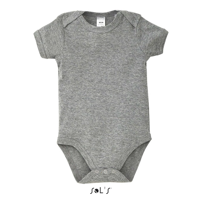 SOL'S BAMBINO, body niemowlęce, 100% czesana bawełna ringspun rib 1x1 180, kołnierzyk, mankiety i wiązanie nogawek, rękawy typu cap, zapięcie na zatrzaski u dołu. Aby dopasować rozmiar, zapoznaj się z tabelą rozmiarów w sekcji dokumentacji produktu.