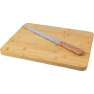 Deska do krojenia chleba, zawiera ząbkowany nóż do krojenia chleba wykonany ze stali nierdzewnej, doskonale sprawdzi się jako element wyposażenia każdej kuchni, produkt wykonany z bambusa
