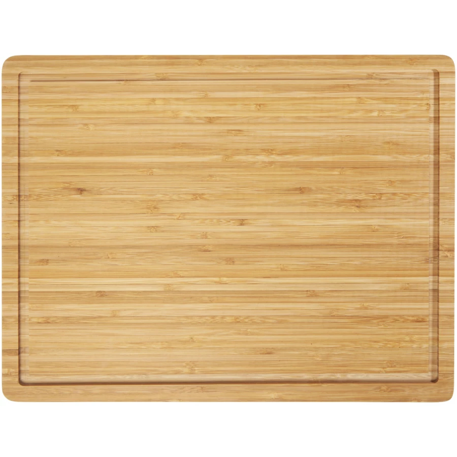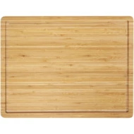 Bambusowa deska do krojenia steków z rowkiem na obwodzie, który zapobiega rozlewaniu się płynów po blacie. Deska do krojenia wykonana z bambusa, który jest pozyskiwany i produkowany zgodnie z zasadami zrównoważonego rozwoju.