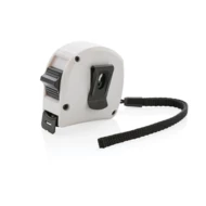 Miara 5 m, taśma o szerokości 19 mm z haczykiem i magnesami, przycisk blokady, wykonana z ABS pochodzącego z recyklingu z certyfikatem RCS (Recycled Claim Standard) który gwarantuje, że wykorzystane materiały pochodzą z recyklingu, całkowita zawartość materiału z recyklingu obliczona w oparciu o wagę całkowitą przedmiotu: 11%, uchwyt z TPR, bambusowy element, w pudełku z papieru kraftowego z certyfikatem FSC® mix (Forest Stewardship Council), ślad węglowy produktu: 0,76 kg CO2