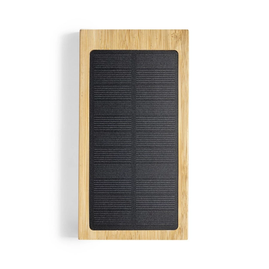 Bambusowy bezprzewodowy power bank 10000 mAh, ładowarka bezprzewodowa 5W, ładowarka słoneczna (NAX-V8335-16)