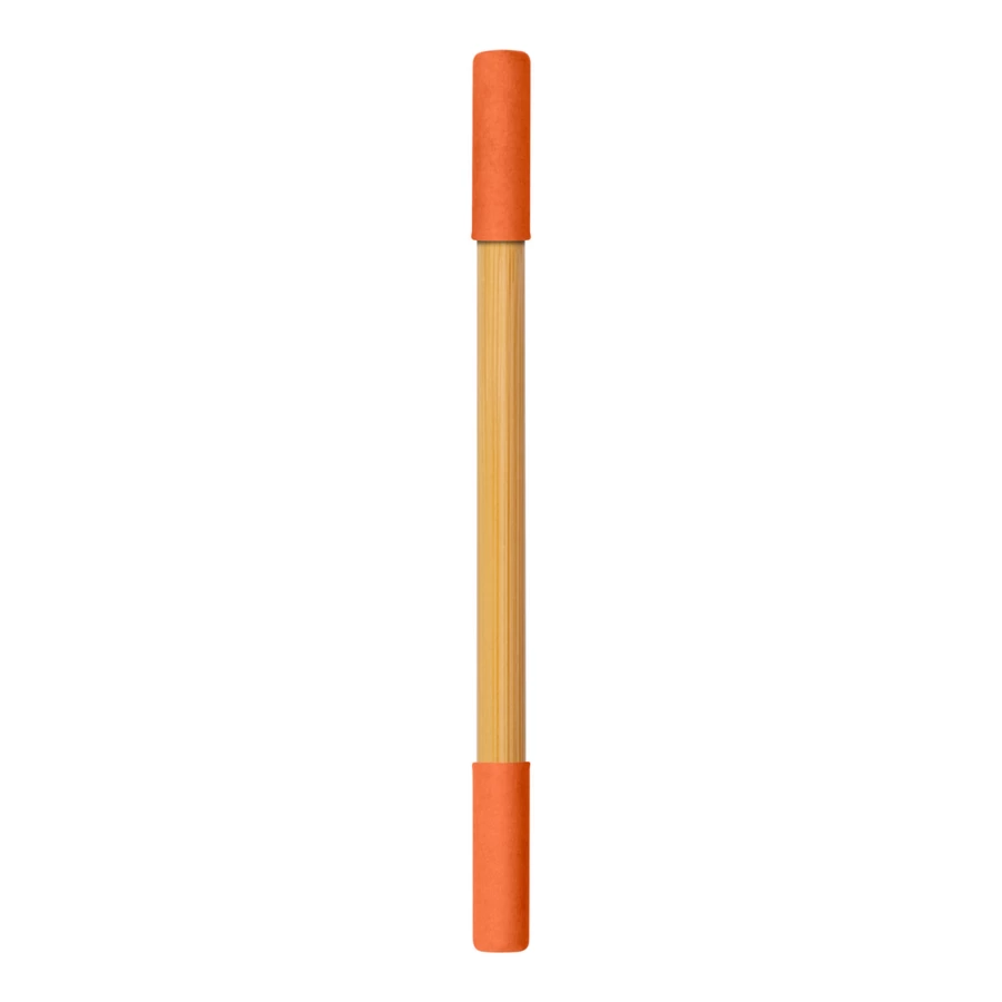 Długopis 2 w 1, "wieczny" ołówek, dzięki wykorzystaniu specjalnej wolnościerającej się końcówki długość pisania ołówka to około 1500 metrów, naostrzony, bambusowy trzon, dwie kolorowe zatyczki wykonane z papieru