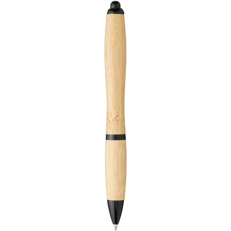 Przyjazny dla środowiska długopis automatyczny z korpusem wykonanym z bambusa, zaakcentowanym chromowanym klipsem i plastikowymi wykończeniami z plastiku ABS. Kolor materiału bambusowego może się różnić.
