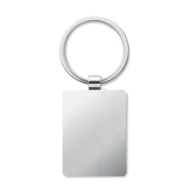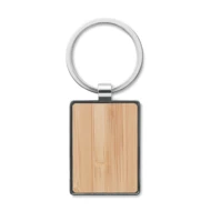 Prostokątny brelok ze stopu cynku i bambusa. Bambus jest produktem naturalnym, mogą występować niewielkie różnice w kolorze i rozmiarze.