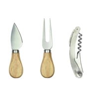 Zestaw do sera, bambusowa deska do sera, widelec i nóż do sera oraz nóż kelnerski